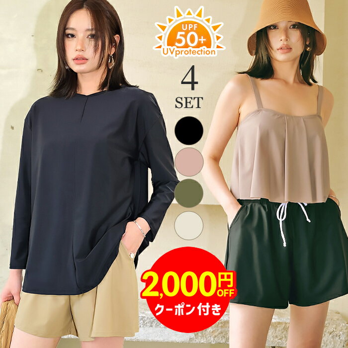 水着 4点セット レディース ラッシュガード ワイヤー付き 盛れる キャミソール タンキニ レトロ ・・・