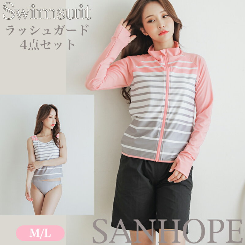 タンキニ 水着 レディース 体型カバー 長袖シャツ ラッシュガード ハーフパンツ 4点セット ビキニ・・・