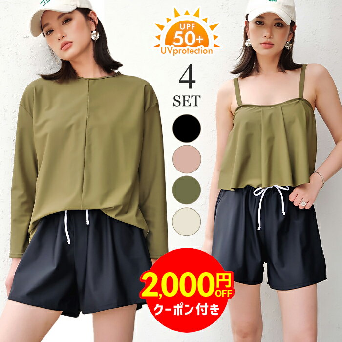 水着 レディース タンキニ 水着 体型カバー タンキニ水着 4点セット ショートパンツ サーフパンツ・・・