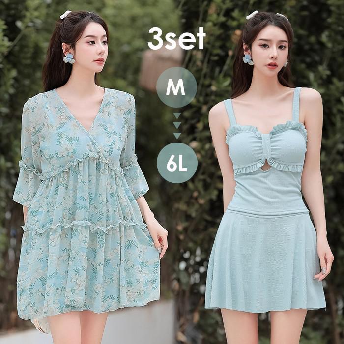 水着 レディース 大きいサイズ ワンピース 体型カバー ぽっちゃり 服みたいな 中学生 高校生 3点・・・