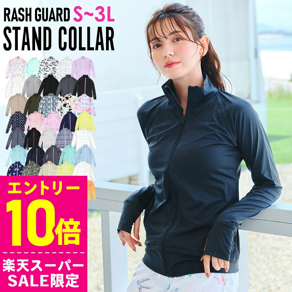 [開始4時間限定クーポン]接触冷感 ラッシュガード レディース ジップアップ スタンドカラー UPF・・・