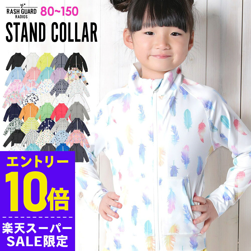 [開始4時間限定クーポン]接触冷感 ラッシュガード キッズ ジップアップ フードなし UPF50+ ・・・