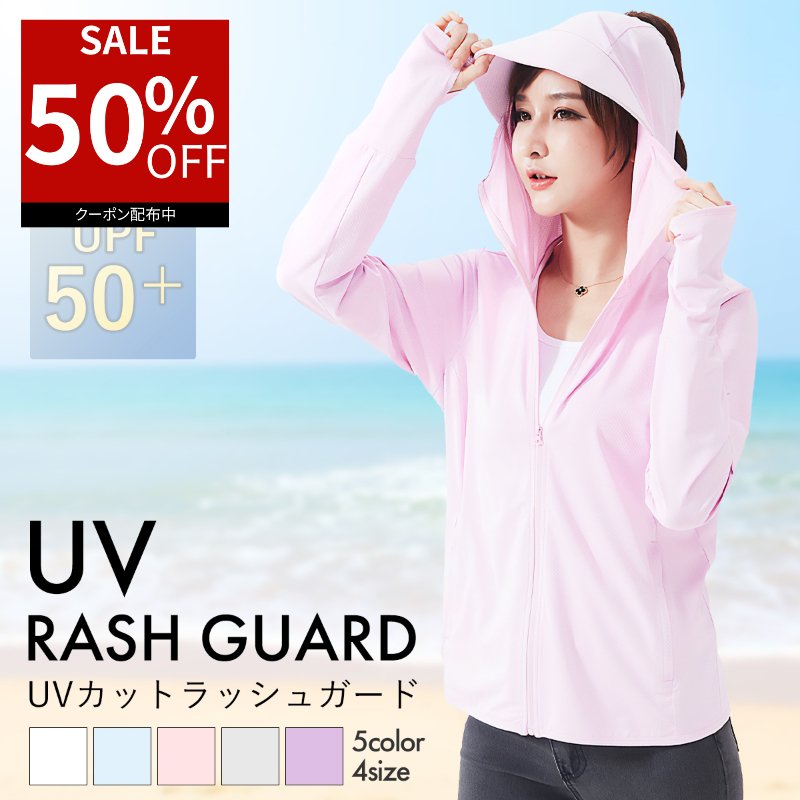 【スーパーセール28時間限定★50%オフクーポン】 ラッシュガード レディース 接触冷感 パーカー ・・・