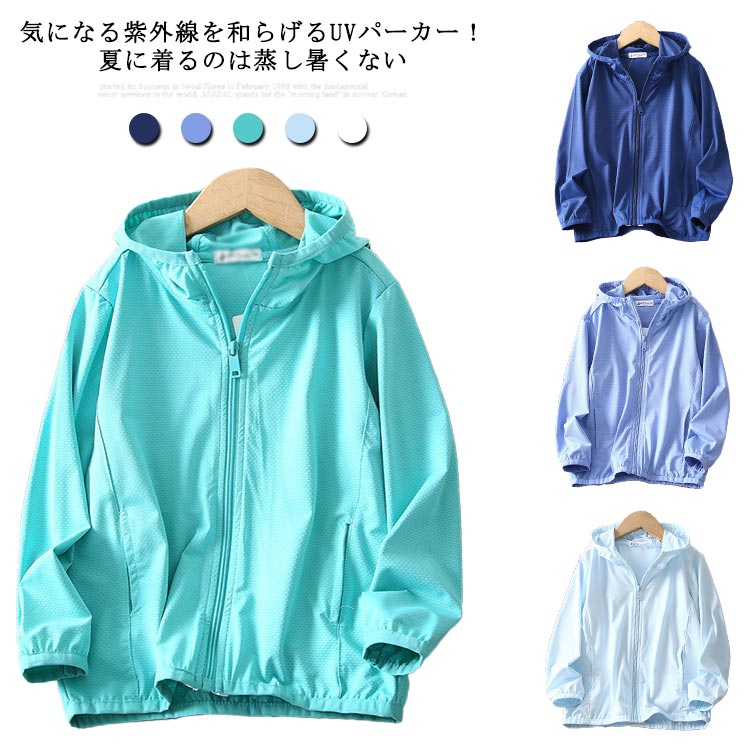 UVカット パーカー キッズ 子供 ジャケット 女の子 男の子 薄手 接触冷感 ウインドブレーカー ・・・