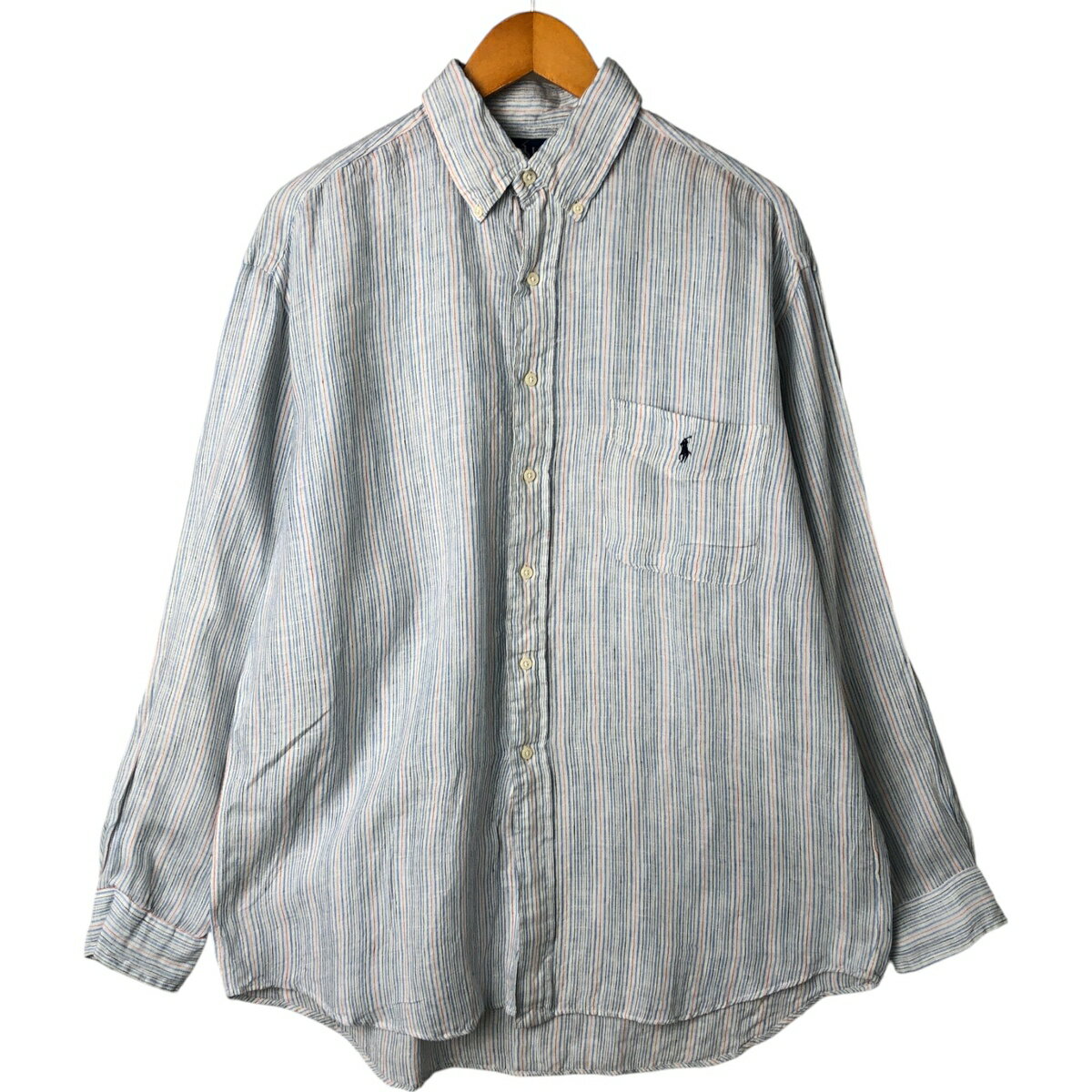 古着 ラルフローレン Ralph Lauren BIG SHIRT マルチストライプ 長袖 リネン ・・・