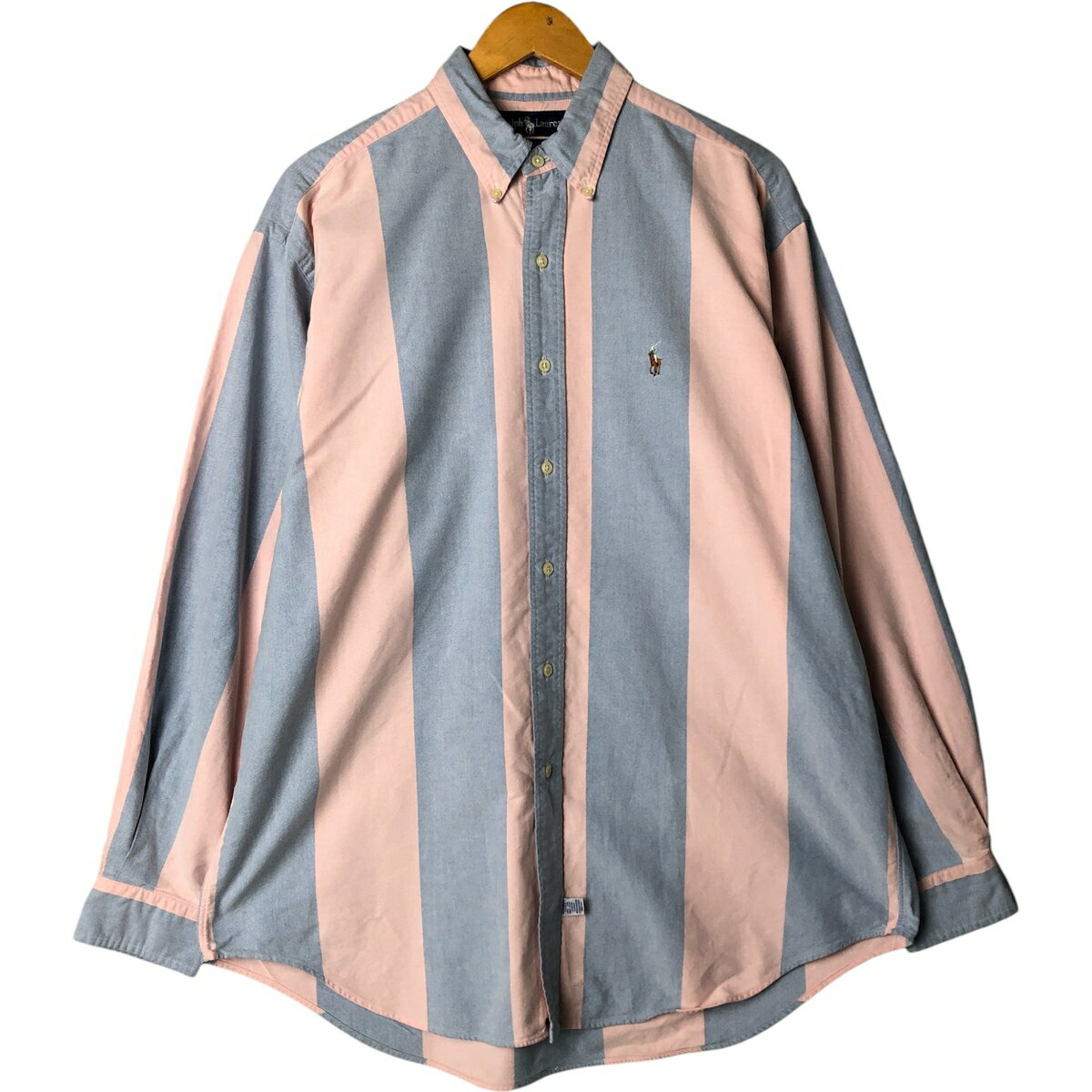 古着 ラルフローレン Ralph Lauren ツートーン 長袖 ボタンダウンストライプシャツ メン・・・