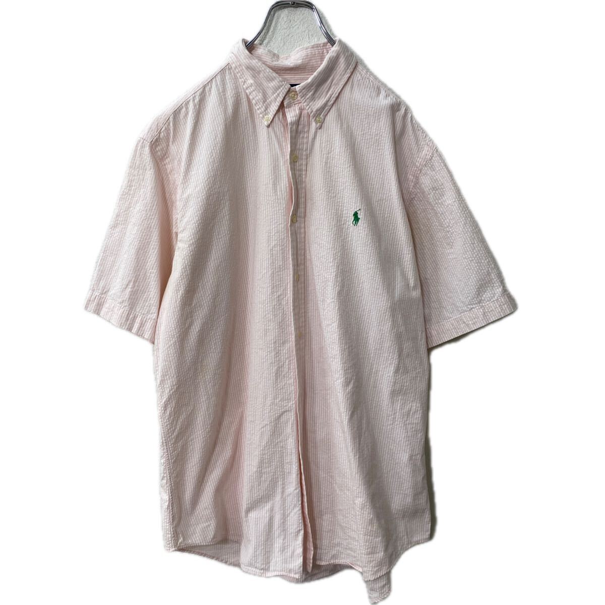 【中古】【古着】 Ralph Lauren 半袖 ストライプシャツ L ベビーピンク ホワイト ラル・・・