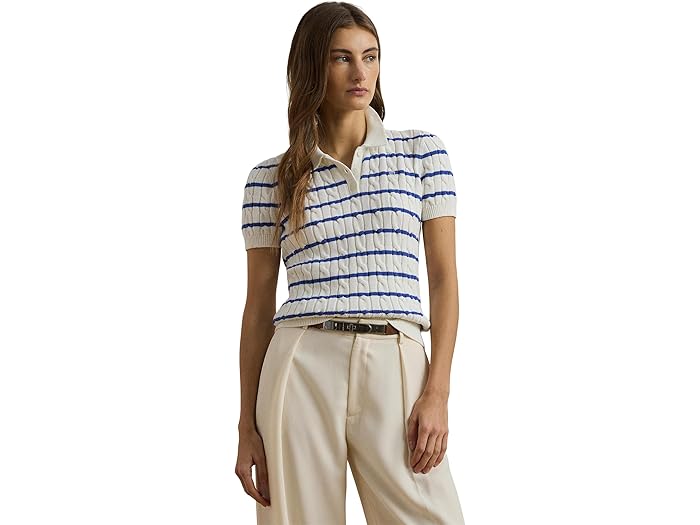 (取寄) ローレン ラルフローレン レディース ストライプド ケーブルニット コットン ポロ セータ・・・