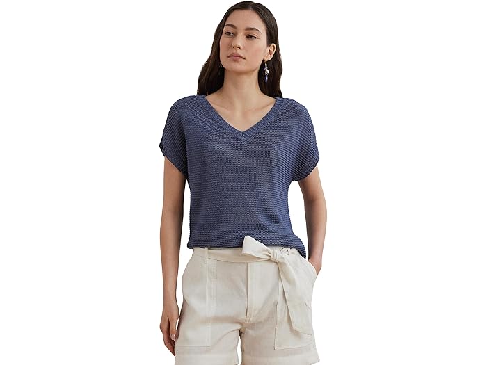(取寄) ローレン ラルフローレン レディース リネンブレンド ショートスリーブ V-ネック セータ・・・
