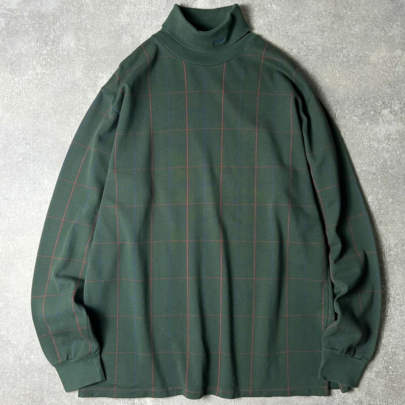 90s USA製 POLO RALPH LAUREN チェック 鹿の子 コットン タートルネック 長・・・