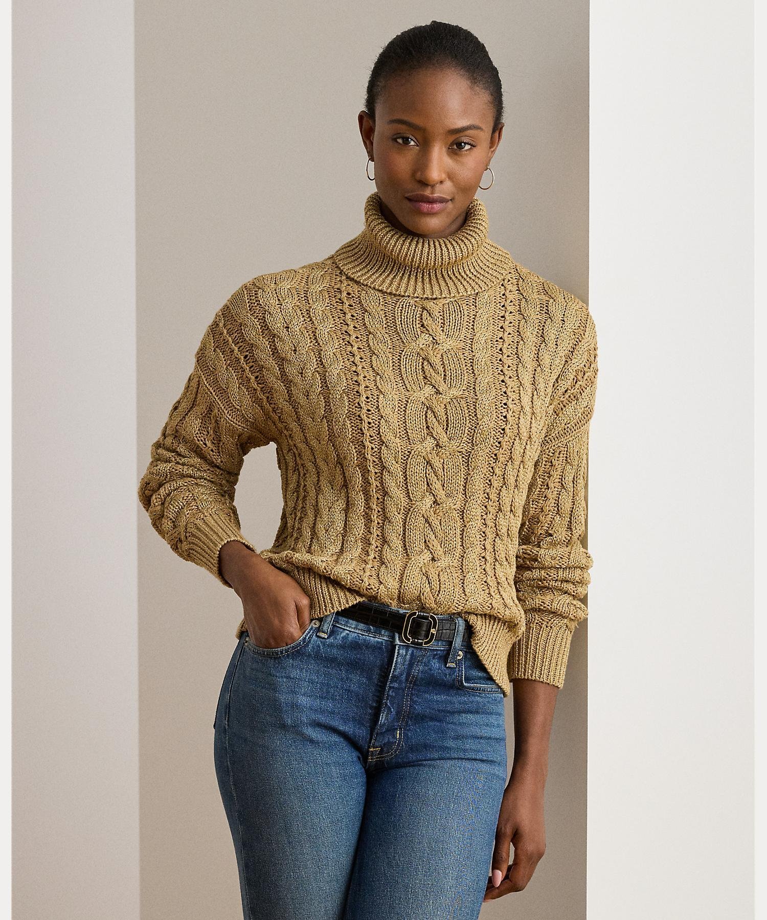 LAUREN RALPH LAUREN メタリック ケーブルニット タートルネック セーター ラルフ・・・