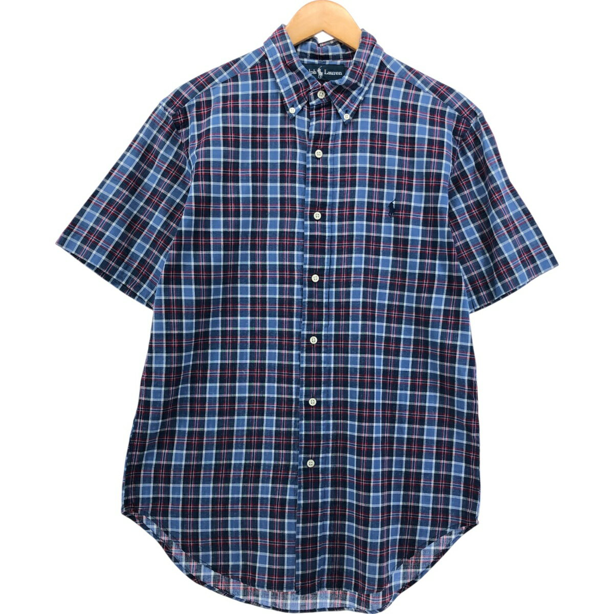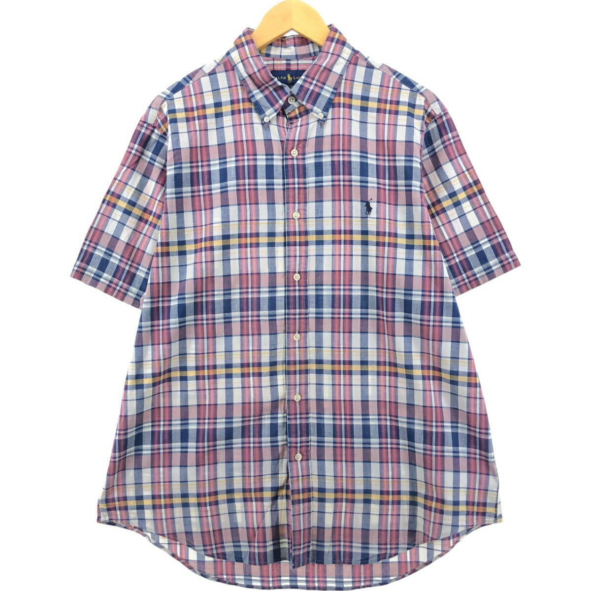 古着 ラルフローレン Ralph Lauren マドラスチェック 半袖 ボタンダウン チェックシャツ・・・