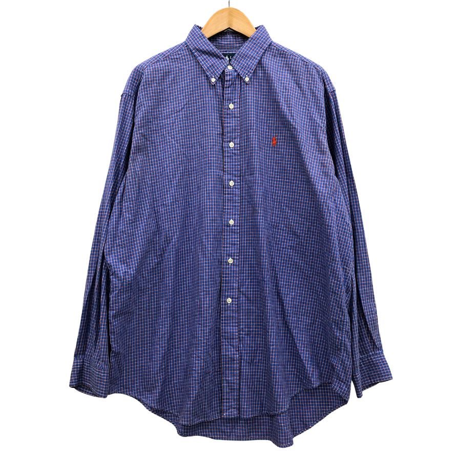 ラルフローレン チェックシャツ ボタンダウン パープル系 メンズ サイズL RALPH LAUREN・・・