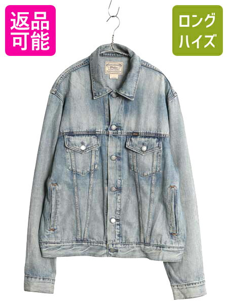ポロ ラルフローレン デニム ジャケット メンズ L / 古着 ヴィンテージ 加工 ジージャン ブル・・・