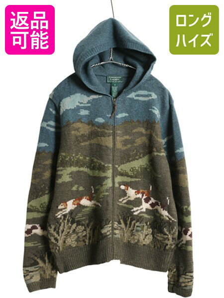 00s ローレン ラルフローレン フルジップ ニット パーカー レディース M オールド ポロ ウー・・・