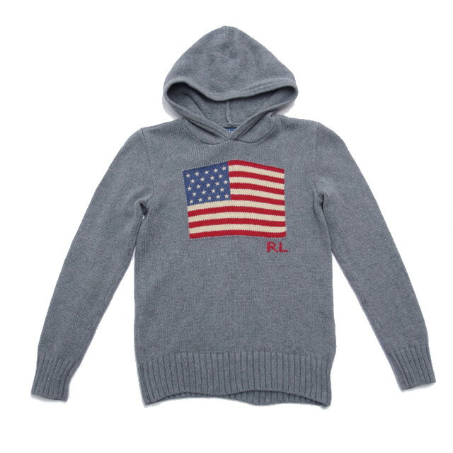 ラルフローレン ニットパーカー 90cm キッズ 男児 女児 グレー×紺【中古】★