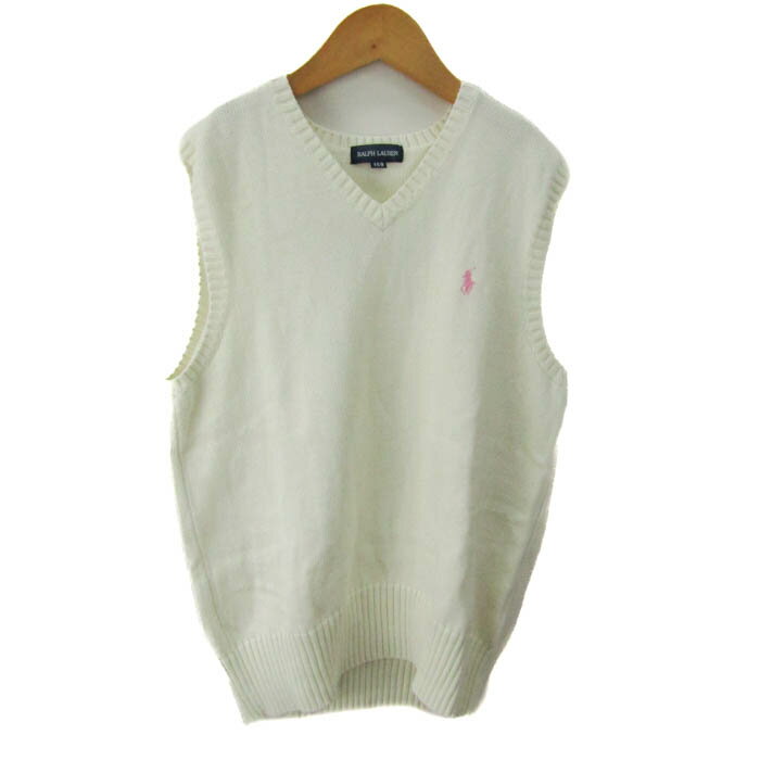 ラルフローレン ニットベスト コットン100% ブランド トップス 白 キッズ 女の子用 150サイ・・・