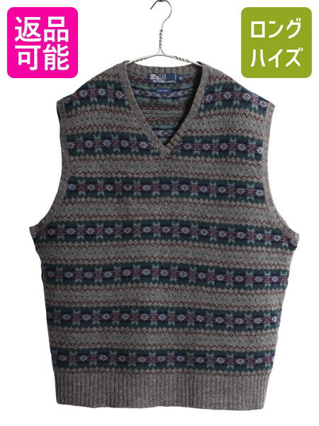 90s ポロ ラルフローレン Vネック ニット ベスト メンズ XL / オールド ウール フェアア・・・