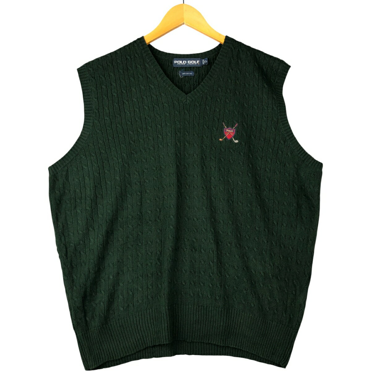 古着 ラルフローレン Ralph Lauren POLO GOLF ポロゴルフ ケーブル編み Vネッ・・・