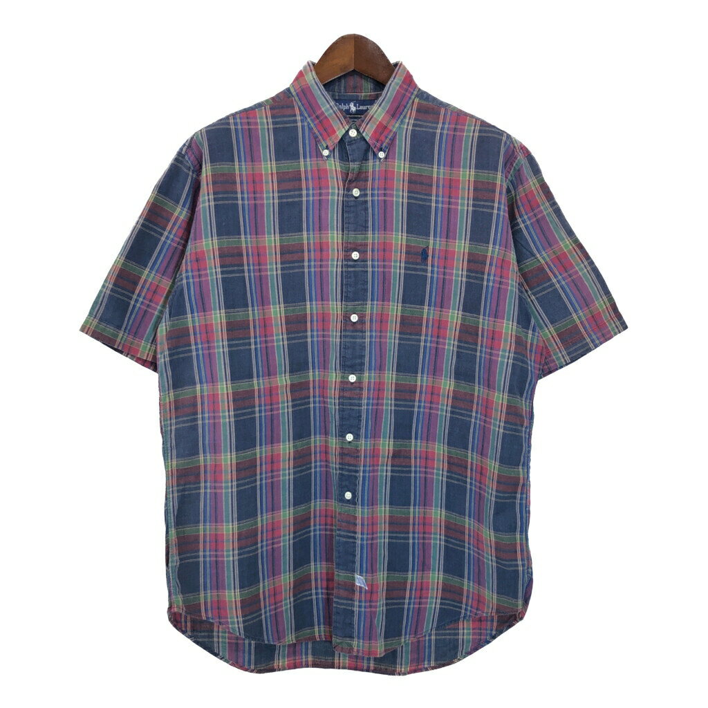 90年代 RALPH LAUREN ラルフローレン ボタンダウン 半袖シャツ マドラスチェック マル・・・