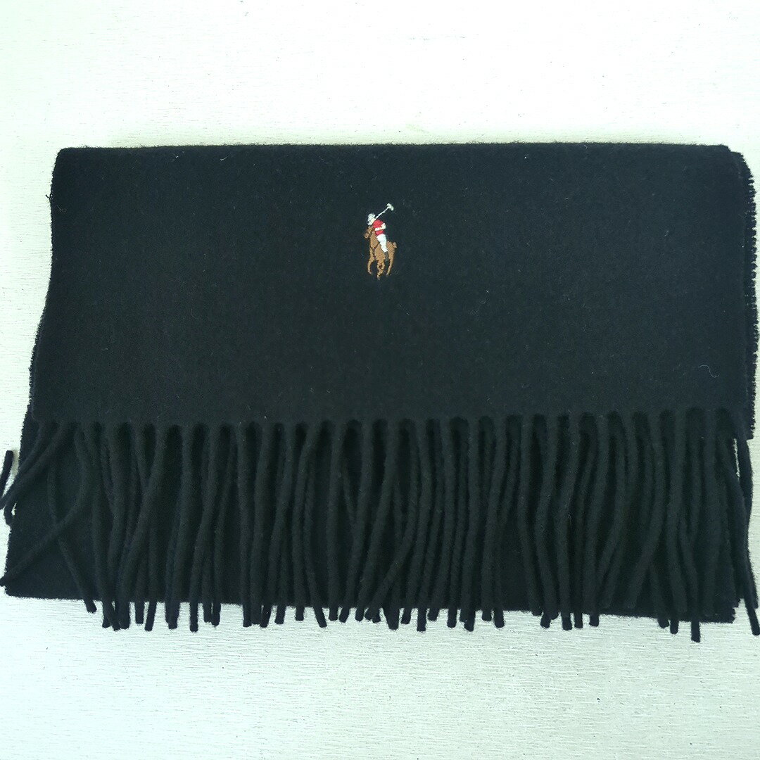 POLO RALPH LAUREN ポロ ラルフローレン 100% ラムウール マフラー ブラック ・・・