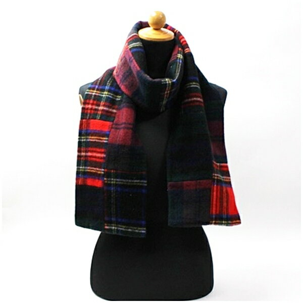 ポロラルフローレン ウール マフラー パッチワーク風 レッド×グリーン 19×154センチ 中古 A・・・