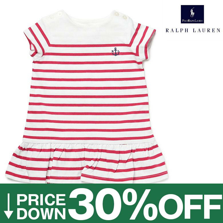 【30%OFF】ラルフローレン ベビードレス ロンパース カバーオール 半袖 ブルマ付き ボーダー ・・・
