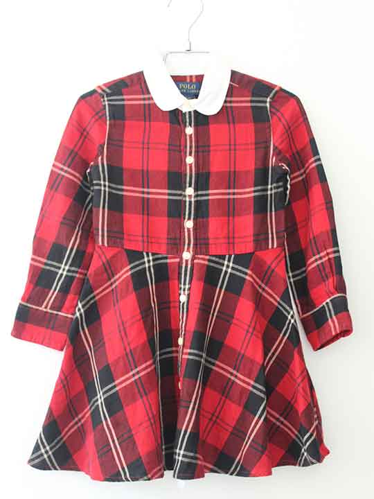 【楽天スーパーSALE!】ラルフローレン 長袖ワンピース 110cm キッズ 女児 赤【中古】†