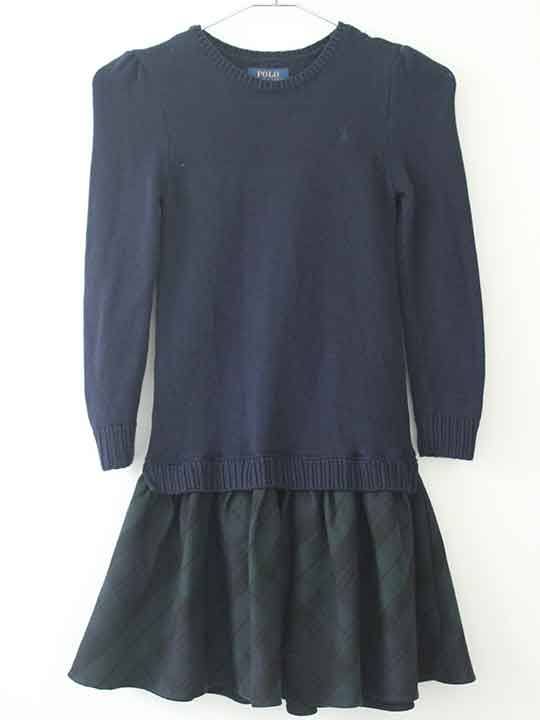 【楽天スーパーSALE!】ラルフローレン 長袖ワンピース 110cm キッズ 女児 黒×白【中古】★