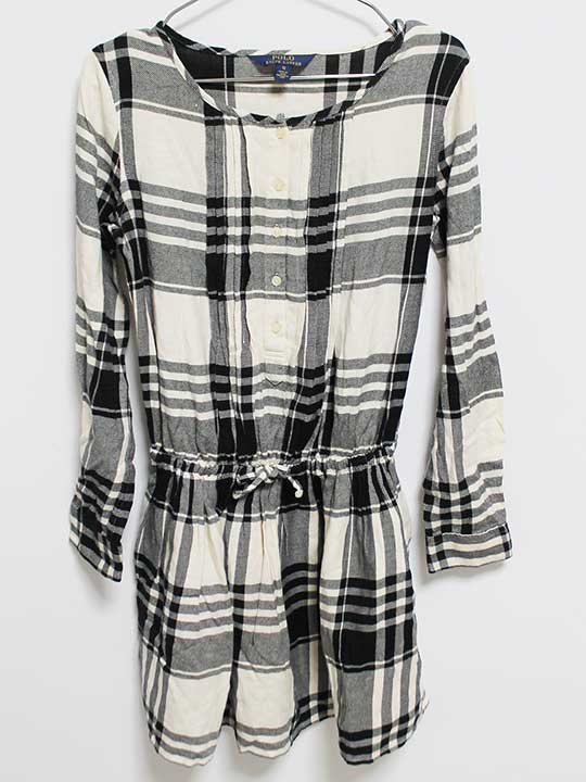 【楽天スーパーSALE!】ラルフローレン 長袖ワンピース 150cm キッズ 女児 白×黒【中古】‡