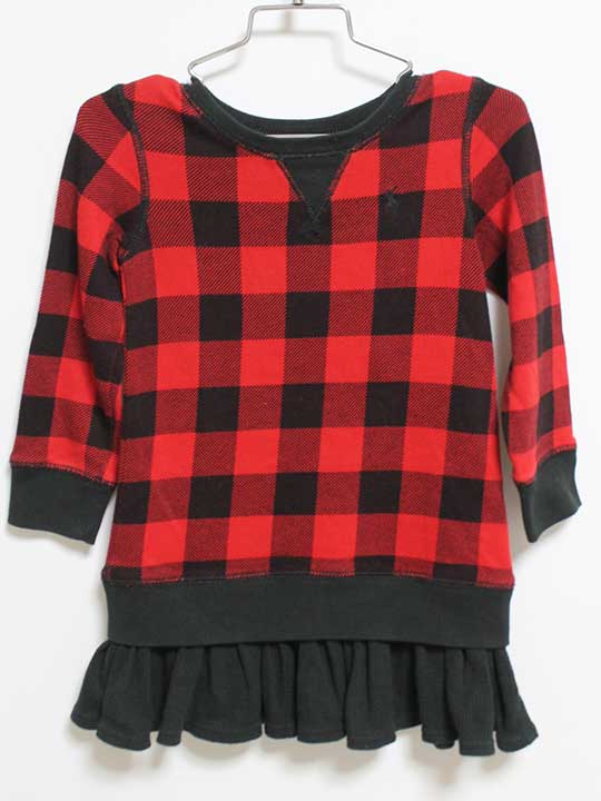 【楽天スーパーSALE!】ラルフローレン 長袖ワンピース 100cm キッズ 女児 赤×黒【中古】‡