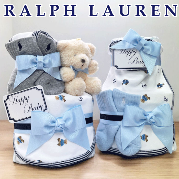 おむつケーキ ラルフローレン 出産祝い 男の子 ベビー オムツケーキ スタイ ギフトセット ベア お・・・