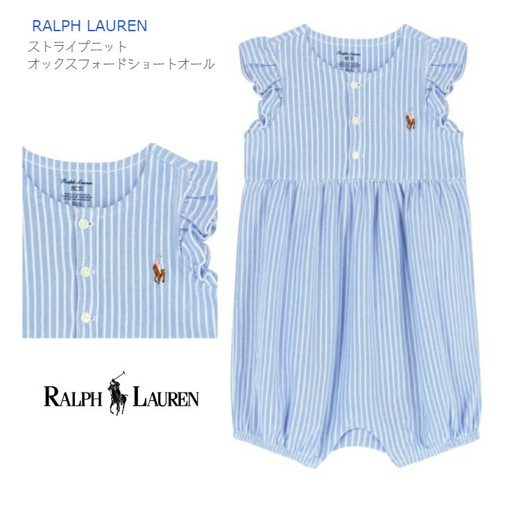 【 POLO RALPH LAUREN ストライプニット オックスフォードショートオール 9M 】ラ・・・