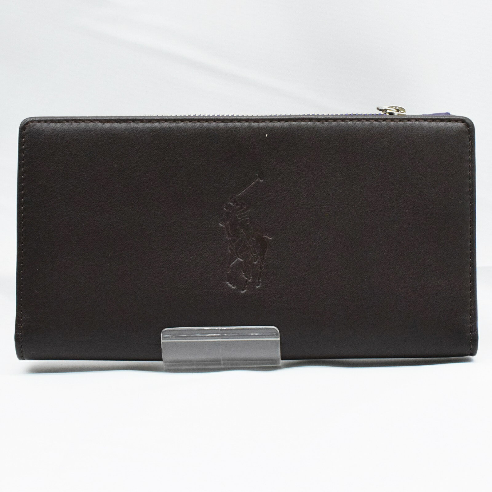 【中古】【RALPH LAUREN】ラルフローレン 二つ折り 長財布 ブラウン パープル シルバー金・・・