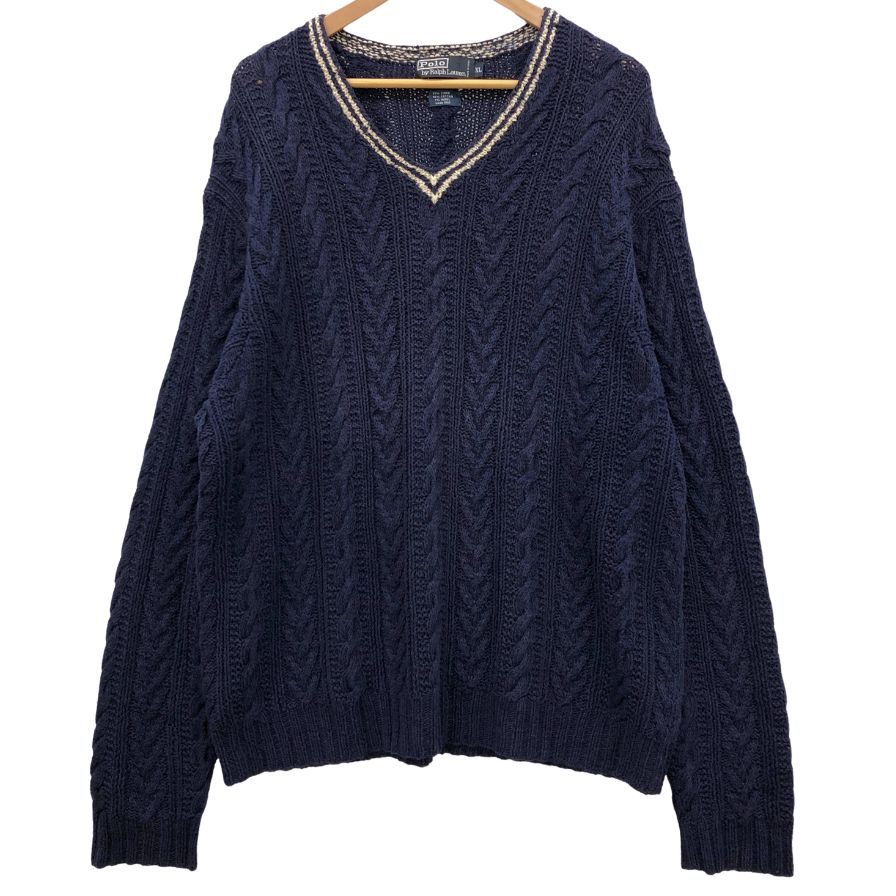 ポロ ラルフローレン プルオーバーニット Vネック ハンドニット ネイビー サイズXL POLO R・・・