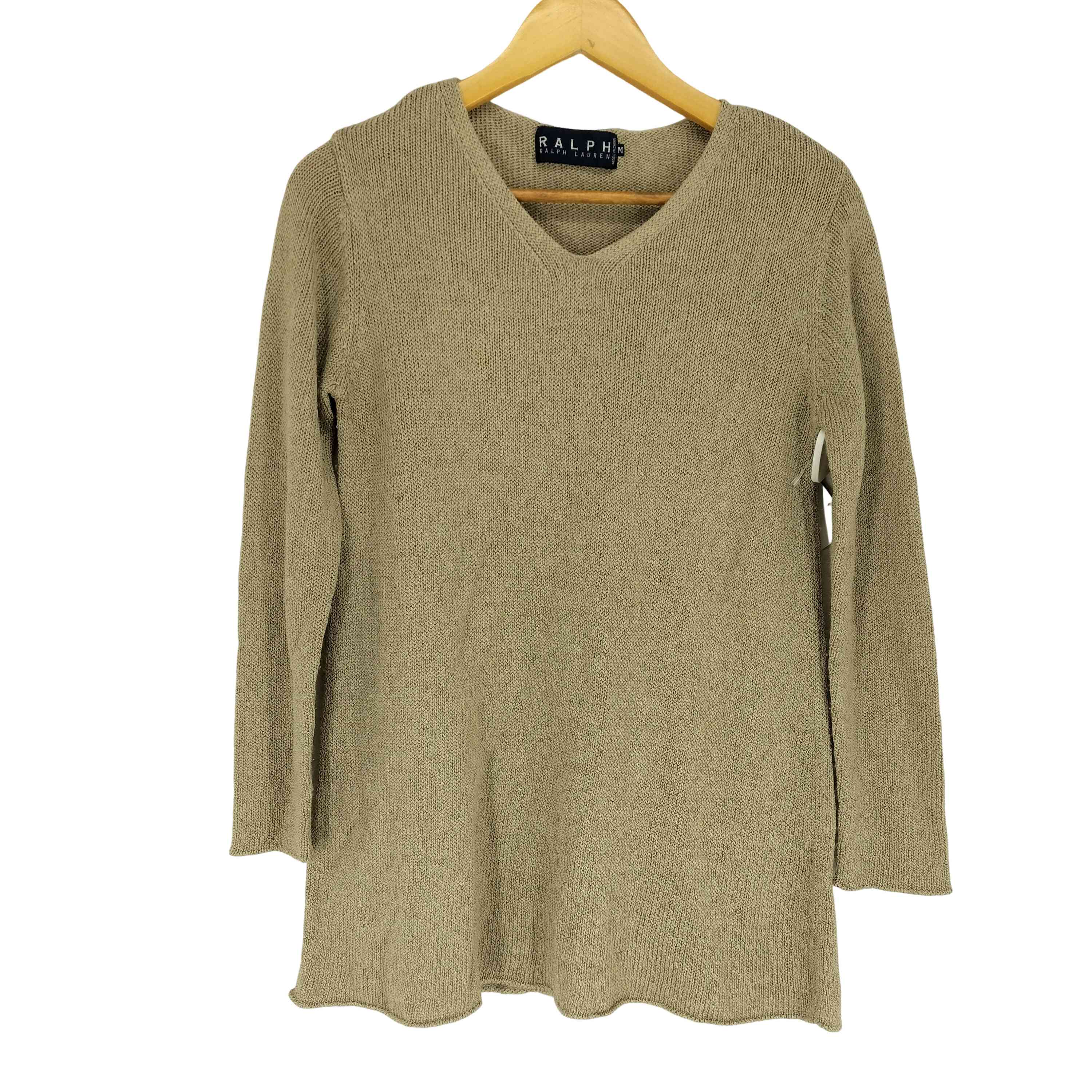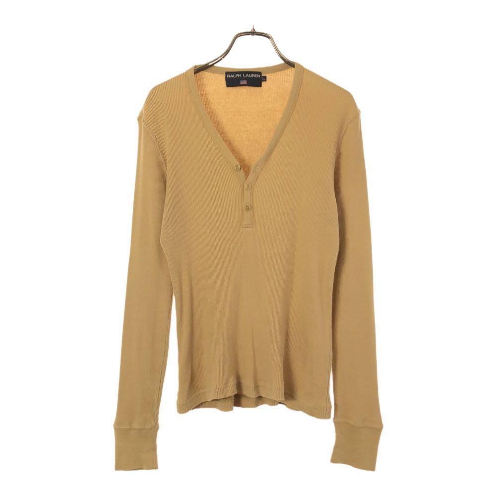 古着 RALPH LAUREN ラルフローレン 日本製 長袖 リブ ニット L ベージュ Vネック ・・・