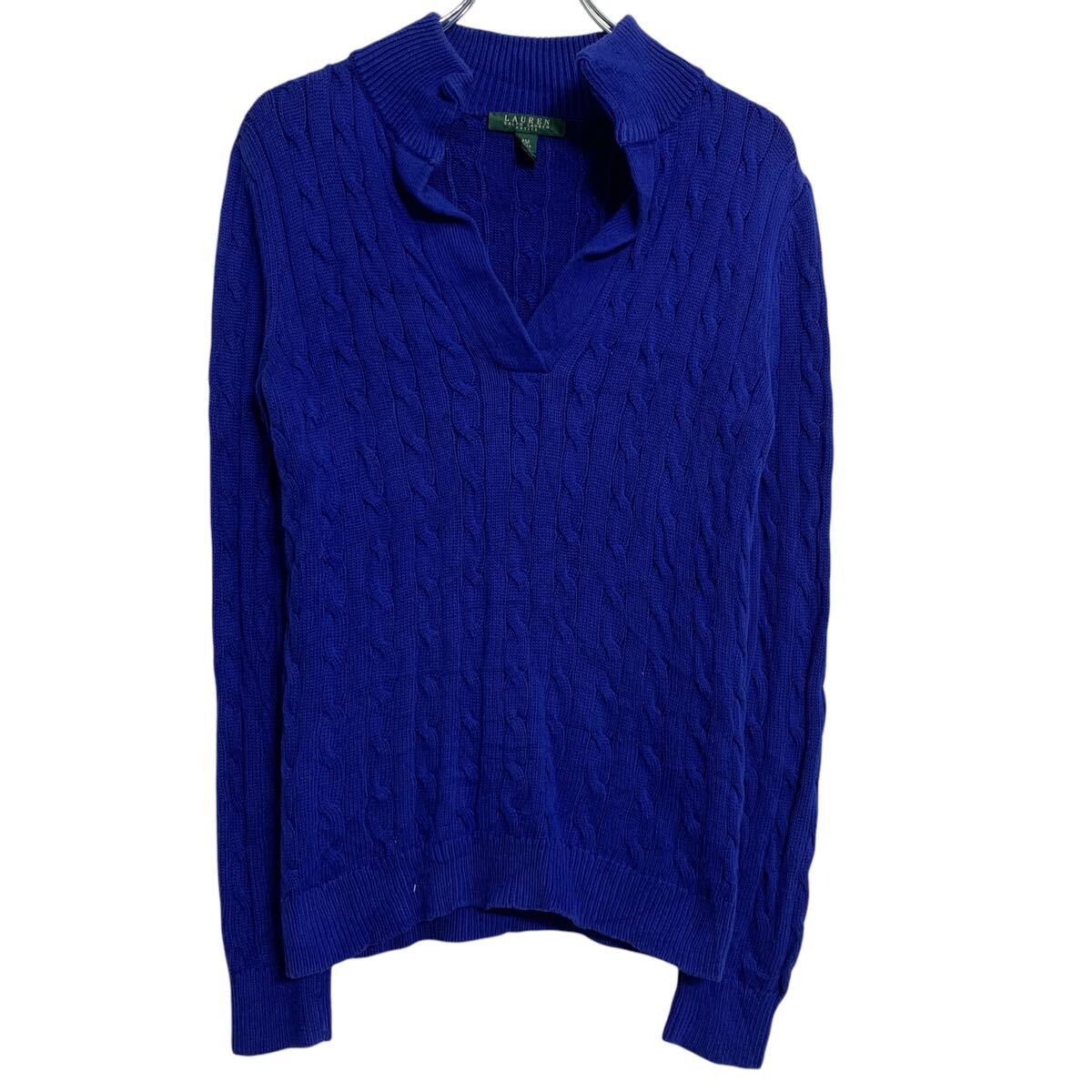 【中古】【古着】 LAUREN RALPH LAUREN コットンニット セーター M ブルー ロー・・・