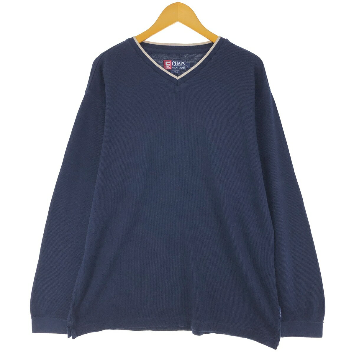 古着 90'S ラルフローレン Ralph Lauren CHAPS チャップス リブ編み Vネック・・・