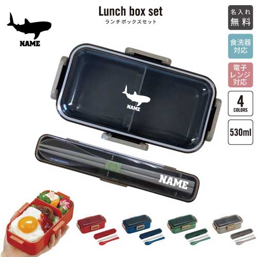 ジンベイザメ/名入れランチボックスセット 名入れお弁当箱 カトラリー 箸 スプーン ランチボックス ・・・