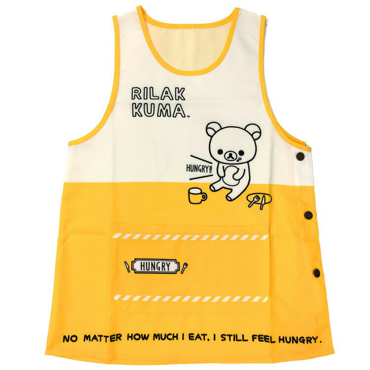 リラックマ グッズ エプロン 転写脇釦 M-L イエロー 874670 プリントデザイン ボタン留め
