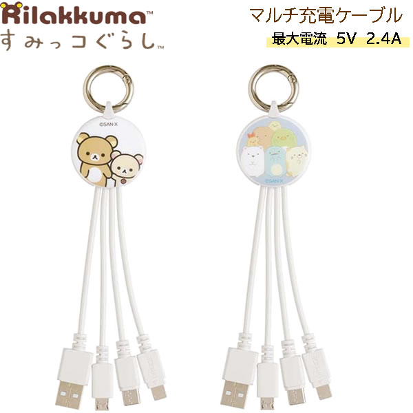 リラックマ すみっコぐらし マルチ充電ケーブル サンエックス かわいい 便利 モバイル スマホ 充電・・・