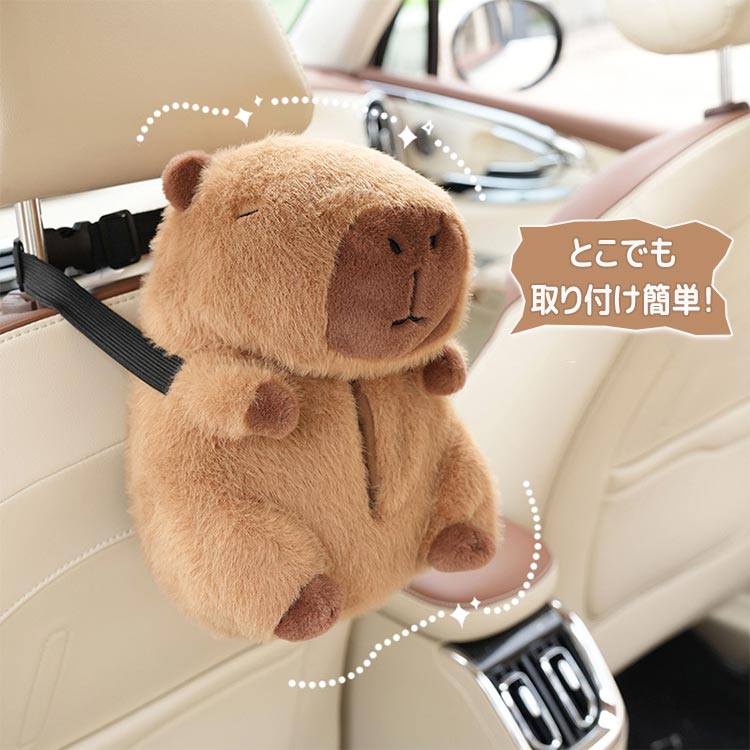 ティッシュケース カピバラ 車 ぬいぐるみ 可愛い フワフワ 動物 ティッシュ ケース ティッシュカ・・・