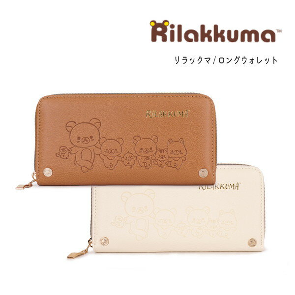 リラックマ .型押し ラウンドウォレット 長財布 ラウンドファスナー ウォレット