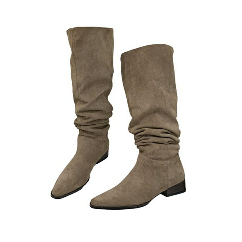 ロングブーツ レディース ジョッキーブーツ PU 膝高 くしゅくしゅ スエード ポインテッドトゥ長靴・・・