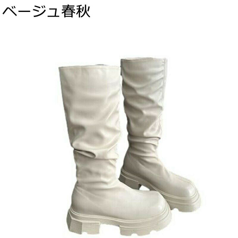 ロングブーツ レディース 厚底 パンツブーツ 袴ブーツ くしゅくしゅ 合成皮革 長靴 ひざ丈 シンプ・・・