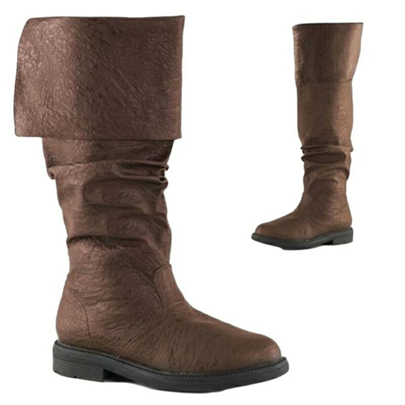 ロングブーツ レディース メンズ ジョッキーブーツ 折り返し 男女兼用 合成皮革 長靴 ひざ丈 安定・・・