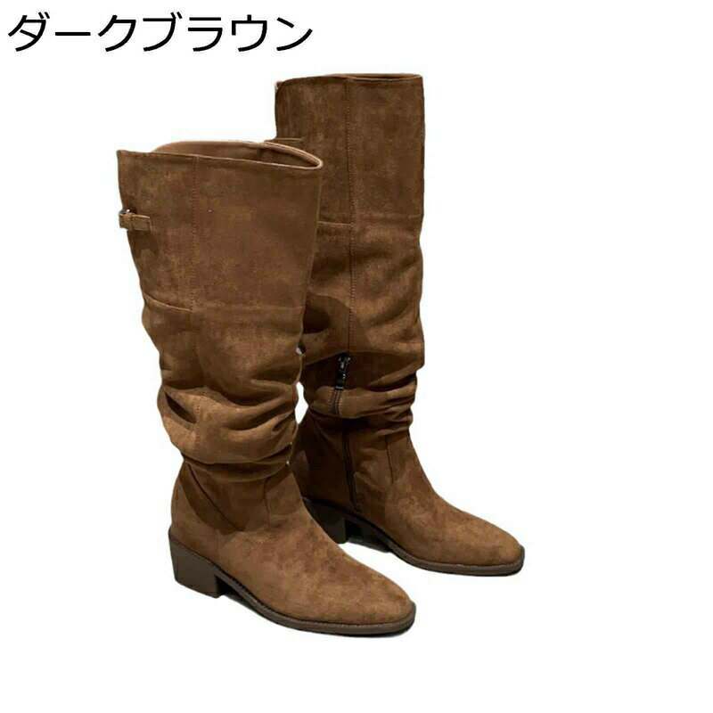 ミドル丈 ロングブーツ レディース くしゅくしゅ 袴ブーツ 秋冬春 合皮 シンプル 美脚 脚長 スエ・・・