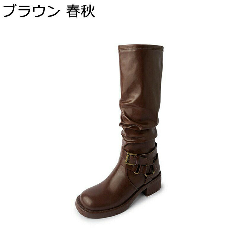 ミドル丈 ロングブーツ レディース ジョッキーブーツ くしゅくしゅ ローヒール 袴ブーツ 秋冬 合皮・・・