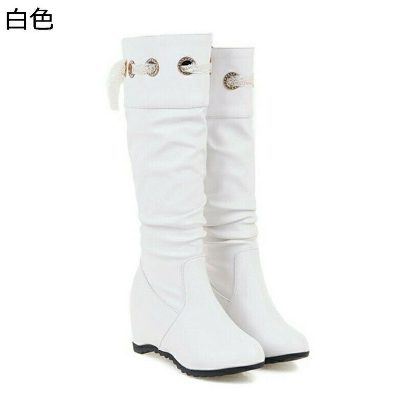 ロングブーツ 長靴 ひざ丈 レディース くしゅくしゅ 4cm インヒール ウェッジ ポインテッドトゥ・・・