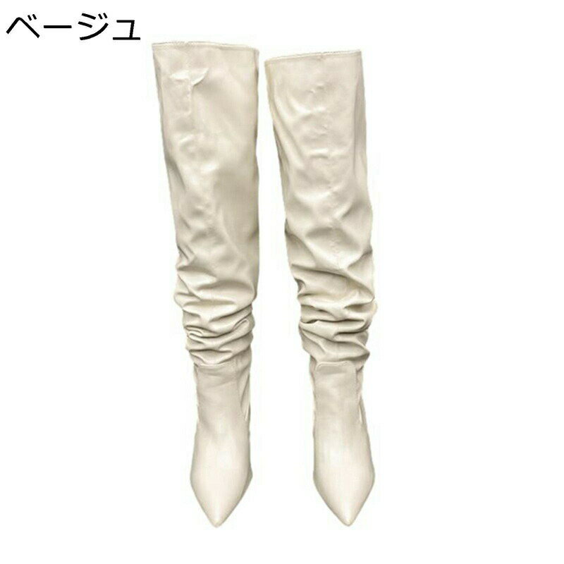 膝高 ロングブーツ レディース ジョッキーブーツ ピンヒール くしゅくしゅ ポインテッドトゥ 秋冬 ・・・